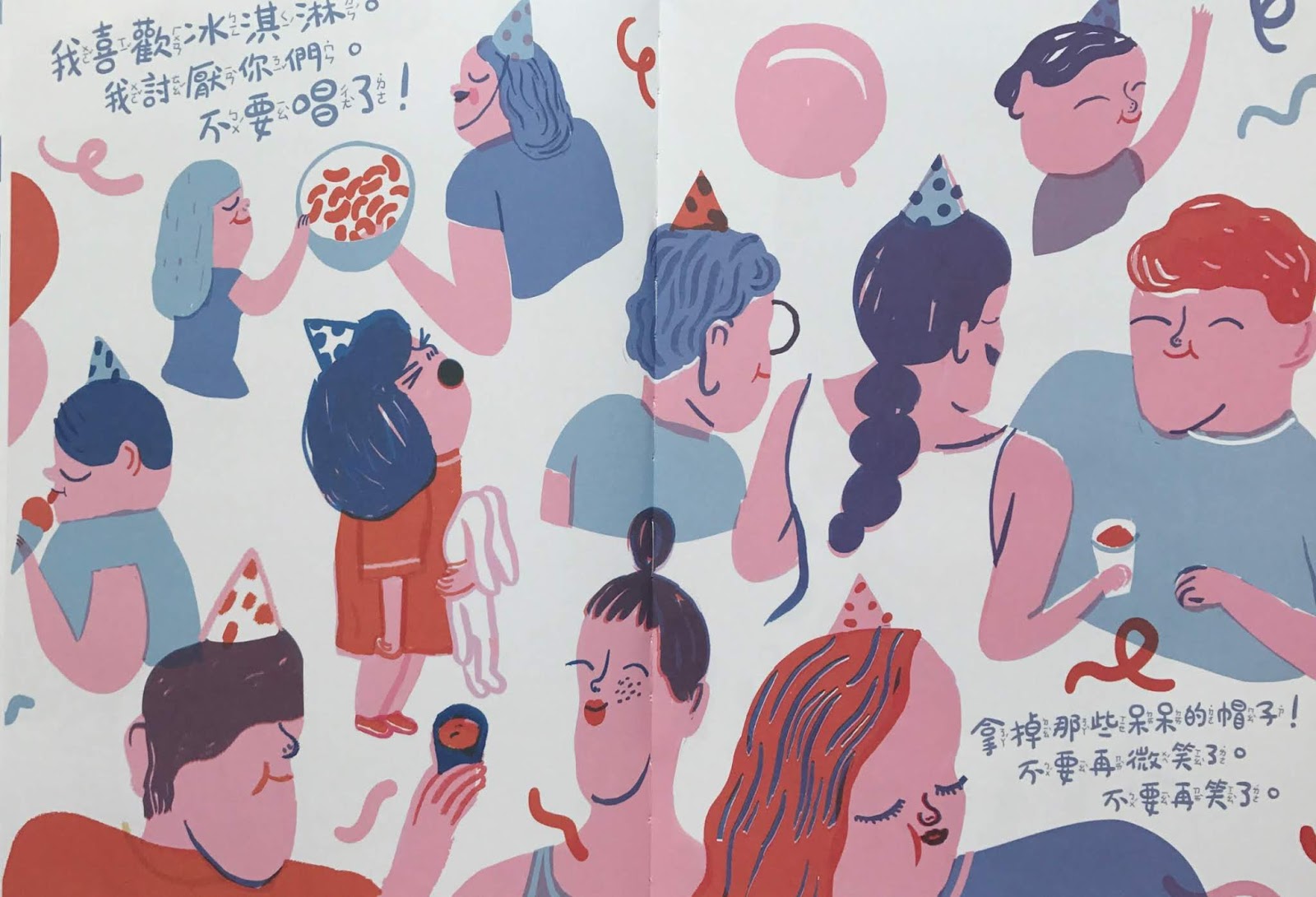 在小孩年幼尚未釐清負面情緒的各種類別時,對於生氣、難過、失望、害怕、緊張,可能一律簡單歸納為口中的討厭,而討厭背後的絃外之音則是心理某種需求需要被滿足與理解,就像故事裡的小女孩一樣。然而在一路討厭這個、討厭那個之後,也許小女孩心中難受的感受略有宣洩,於是抓緊了機會稍稍釋出善意,從「我討厭你們大家」到「我討厭你,可是我想要你愛我」,大人們也務必抓緊機會「接起」這枚軟化的心意,並在風平浪靜的相處時光時,再適時地為孩子梳理情緒與表達的關係。